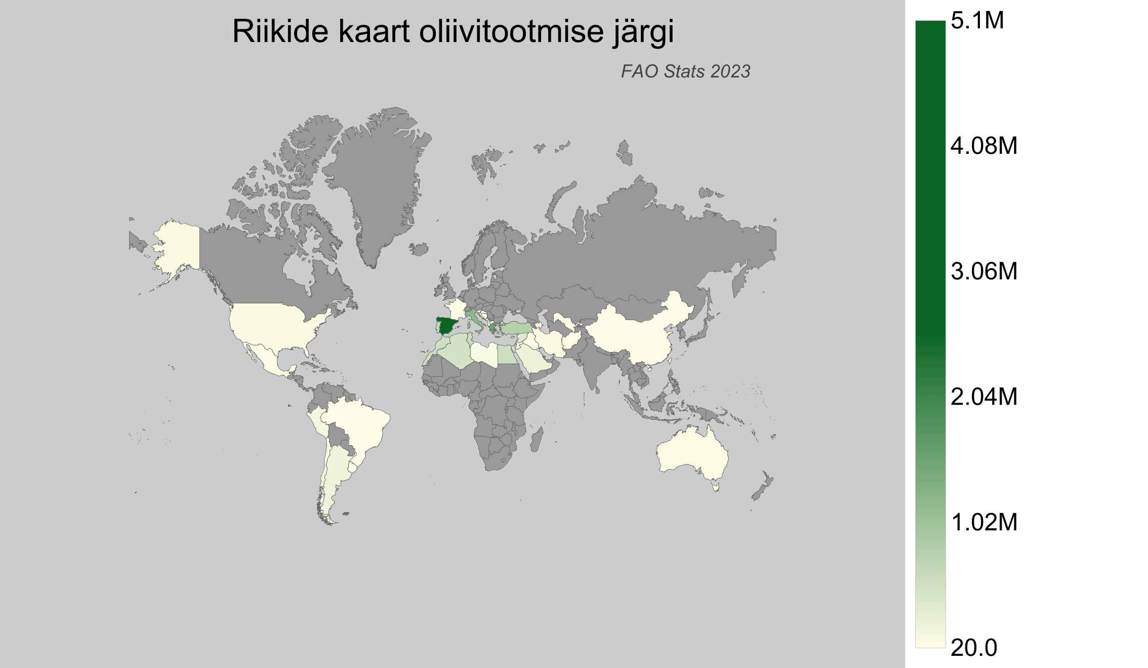 - FAO statistika kohaselt Eesti ei toodeta oliive, kuna siin ei ole sobivad kliimatingimused nende kasvatamiseks.