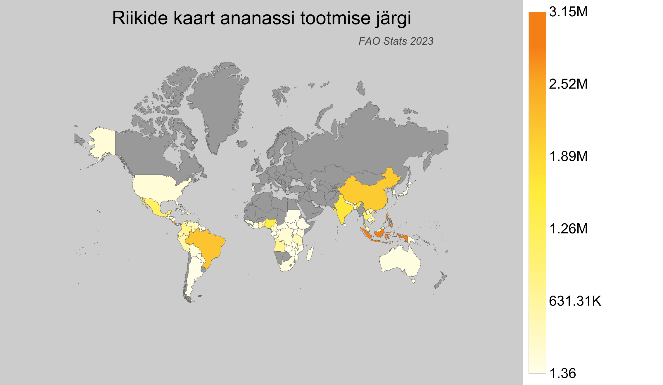 - Eestis ei ole ananassi tootmist registreeritud, vastavalt FAO andmetele.